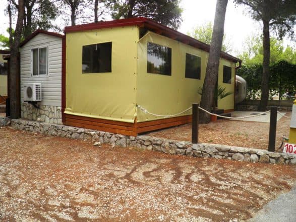V kamp so v zadnjih letih umestili skupno 22 mobilnih hišic, ponujajo pa vam modele Twix za 2 osebi ter Premium in Premium Mare za 4-6 oseb. Na voljo sta tudi dve privatni hišici Jambrešić za 5 oseb. V ceno najema je vključena menjava posteljnine in brisač, satelitska televizija, klima, terasa oz. zunanji predprostor. V vseh hišicah so dovoljeni psi (doplačilo).